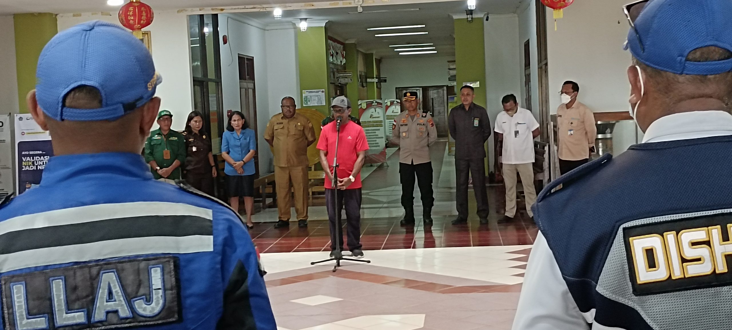 PJ Wali Kota Jayapura, Frans Pekey saat berikan arahan apel Tim Pengendali Inflasi Kota Jayapura di Mainhall Kantor Walikota Jayapura, Selasa, (31/01)