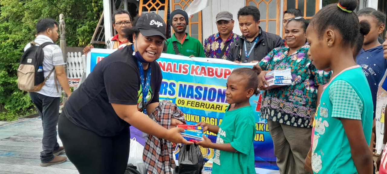 Giat dalam rangka peringatan HPN tahun 2023 dimulai dari penyerahan sejumlah buku dan alat tulis bagi anak-anak di panti asuhan laskar Kristus yayasan laskar kristus di kampung sabron sari distrik sentani barat,dan sekolah adat Papua di kampung Hobong.