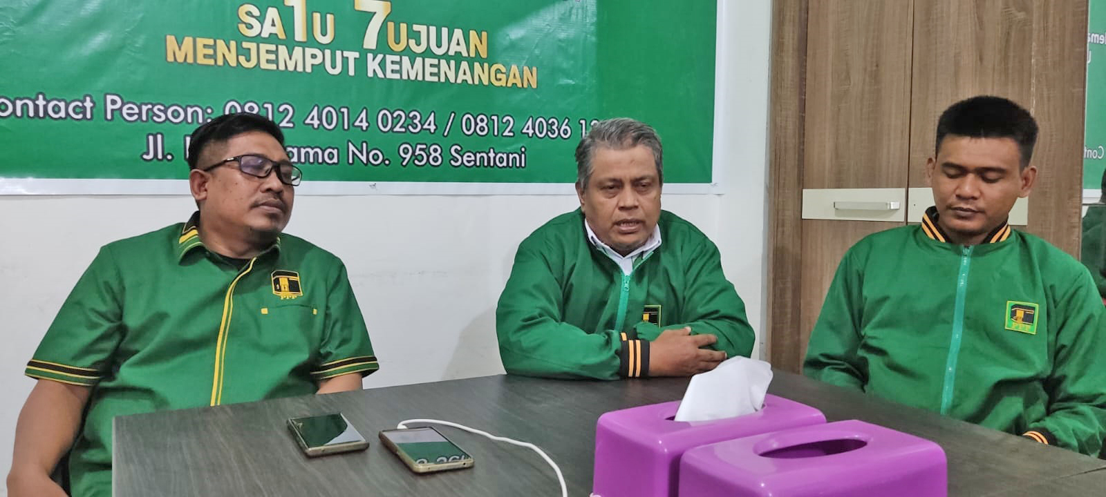 Ketua DPC PPP Kabupaten Jayapura Muhammad Akbar didampingi Sekretaris DPC PPP Kabupaten Jayapura Abdul Syukur dan Sekretaris Pendaftaran Bacaleg PPP Abdie Wahab, ketika dikonfirmasi wartawan media online ini di Sekretariat DPC PPP Kabupaten Jayapura, Jalan Raya Pasar Lama Sentani, Kota Sentani, Distrik Sentani, Kabupaten Jayapura, Kamis (23/2)