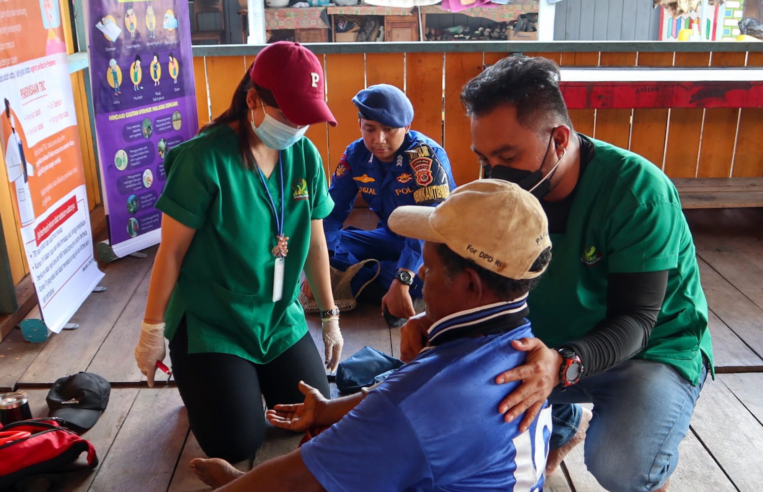 Paraparatv.id | Jayapura | Petugas Binluh dan Bintibmas Perairan Waibu Dit Polair Polda Papua bersama Tim doctorSHARE berikan pelayanan medis sembari menyambangi masyarakat di Kampung Dondai, Distwik Waibu, Kamis (13/4).