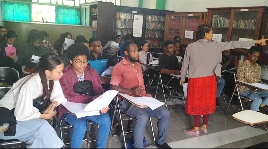 Sebagai dosen tamu, Perempuan kelahiran Port Moresby itu membagikan ilmu tentang berbahasa Tokpisin, bahasa resmi di PNG selain bahasa inggris.