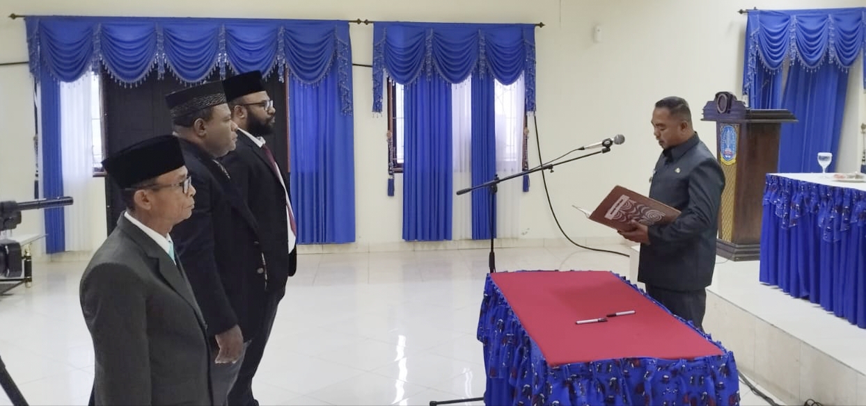 Paraparatv.id | Sentani | Penjabat (Pj) Bupati Jayapura, Triwarno Purnomo, S.STP., M.Si., melantik dan mengambil sumpah/janji jabatan Badan Pengawas Perusahaan Daerah (Perusda) Baniyau Kabupaten Jayapura periode 2023-2027.