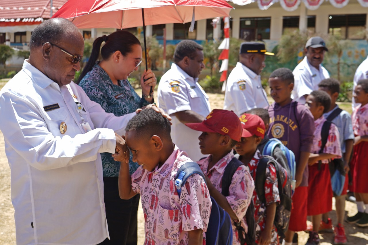 Paraparatv.id | Tiom | Penjabat Bupati Lanny Jaya Doren Wakerkwa disambut hangat saat mengunjungi siswa-siswi Sekolah Dasar (SD) Inpres Tiom,Rabu (30/8).