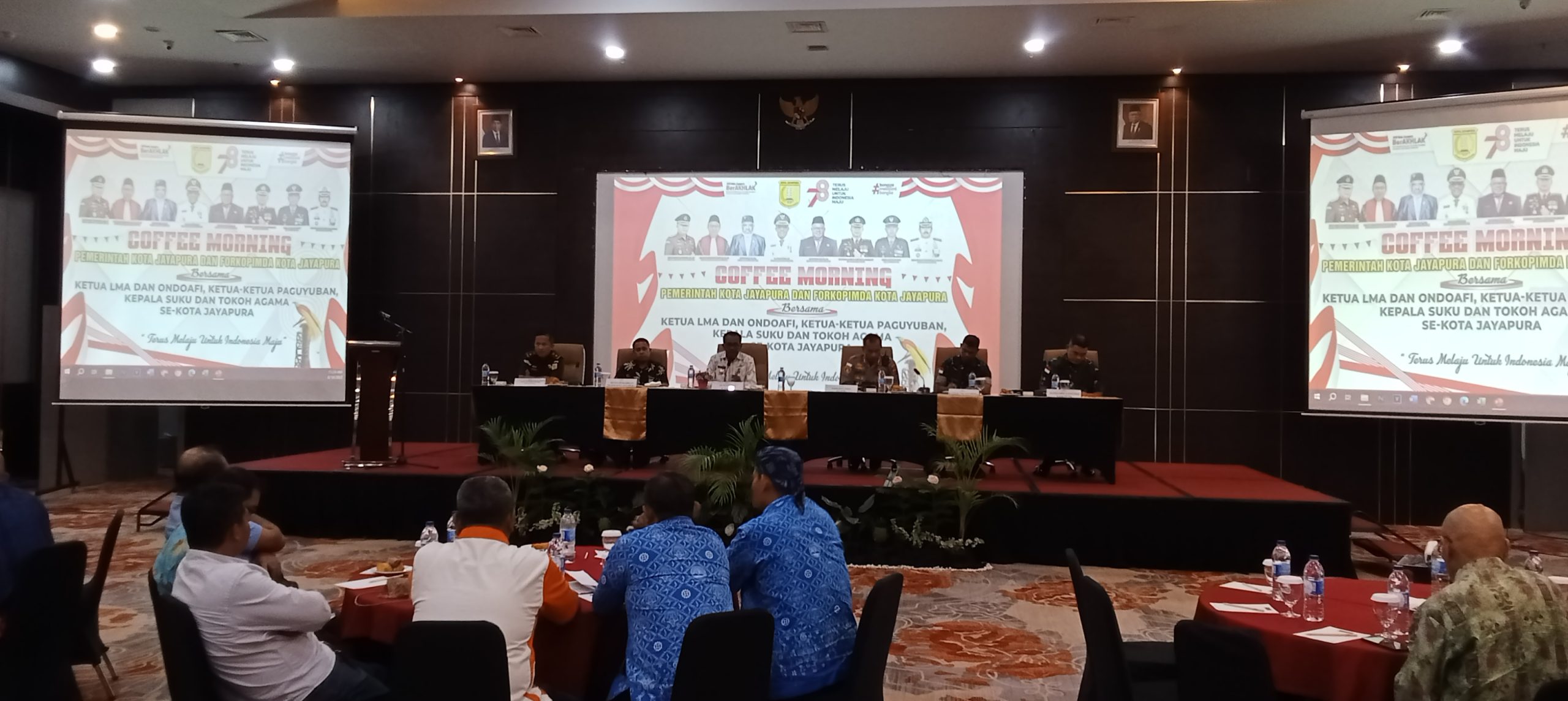 Paraparatv.id |Jayapura| Dalam Coffe Morning bersama seluruh Ketua Paguyuban, Kepala Suku dan Tokoh Agama yang dilaksanakan di salah satu hotel di Kota Jayapura, Kamis (10/08) meminta agar selalu dapat menjaga komunikasi untuk menjaga Kamtibmas di Kota Jayapura.