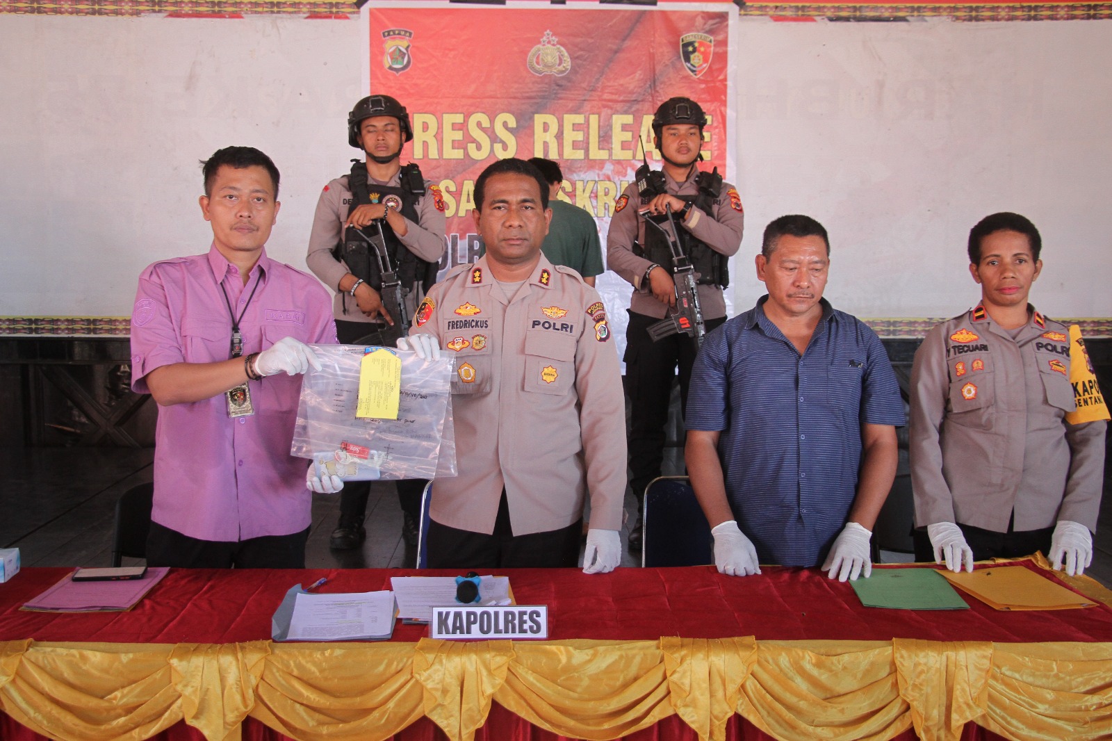Kasus tindak pidana perdagangan orang (TPPO) diungkap satuan Reskrim Polres Jayapura disampaikan langsung Kapolres Jayapura AKBP Fredrickus W.A Maclarimboen, S.IK., MH yang didampingi Kasat Reskrim AKP Sugarda A.B Trenggono, S.TK., MH saat press conference di Aula Obhe Reay May didepan awak media cetak dan elektronik. Selasa, 01/08 pagi.