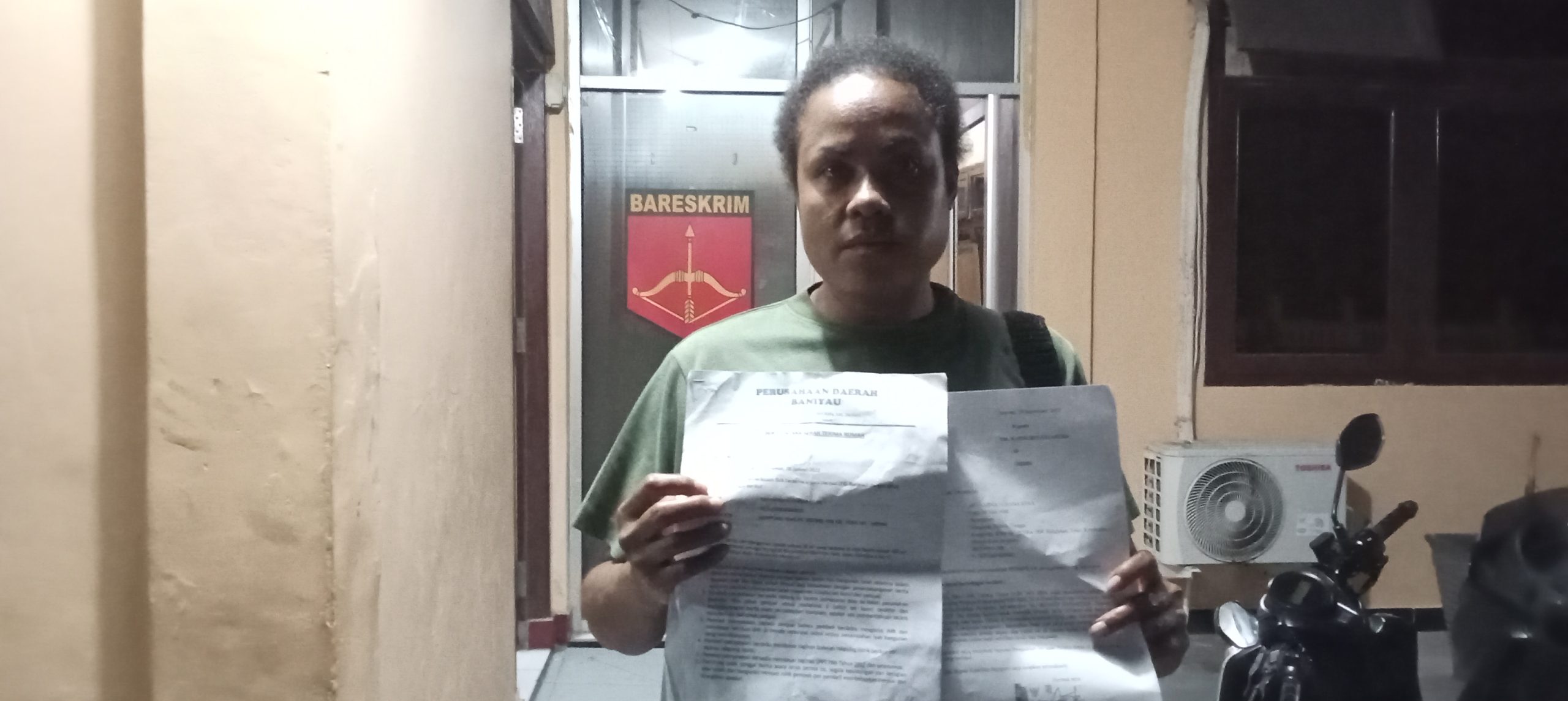 “Hari ini saya melaporkan Anieke Fonataba ke Polisi karena saya merasa ditipu sama dia” kata Akdamina Susana Epaa di Mapolres Jayapura, Jumat (29/09).