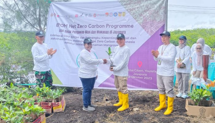 Kepala Balai Besar POM di Jayapura Hermanto, S. Si., Apt., MPPM mengatakan , kegiatan penanaman pohon mangrove ini merupakan salah satu upaya BPOM untuk mendukung program Zero Carbon di Indonesia.
