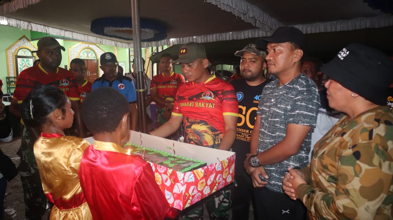 Paraparatv.id | Yapen | Dalam perayaan HUT TNI ke 78 Tahun 2023, Dandim 1709/Yawa Letkol Inf Catur P. Nugroho mendapatkan kejutan dari legislator Kepulauan Yapen Roy Nasrulla dengan memberikan kue ulang tahun di sela-sela menonton babak final pada turnamen sepak bola pelajar di lapangan sapta marga. Jumat (6/10/23).