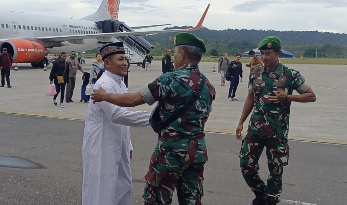 Kepulangan PNS Suton Azis dari ibadah Umroh ke Tanah Suci Mekkah diawali dengan penyambutan dari Pabung 1708/BN, Kapten Inf Irianto di Bandar Udara Internasional Frans Kaisepo dan selanjutnya menuju Makodim 1708/BN.
