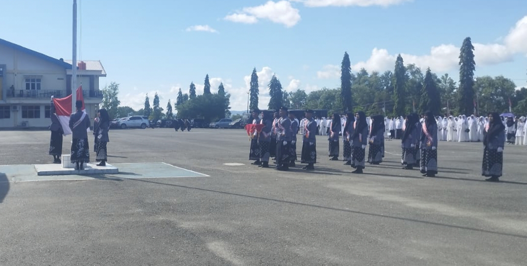Paraparatv.id | Sentani | Sekretaris Daerah (Sekda) Kabupaten Jayapura, Dr. Hanna S. Hikoyabi, M.KP., pimpin upacara peringatan Hari Santri Nasional (HSN) Tingkat Provinsi Papua Tahun 2023, yang berlangsung di Lapangan Apel Kantor Bupati Jayapura, Gunung Merah, Sentani, Kabupaten Jayapura, Papua, Senin, 23 Oktober 2023.