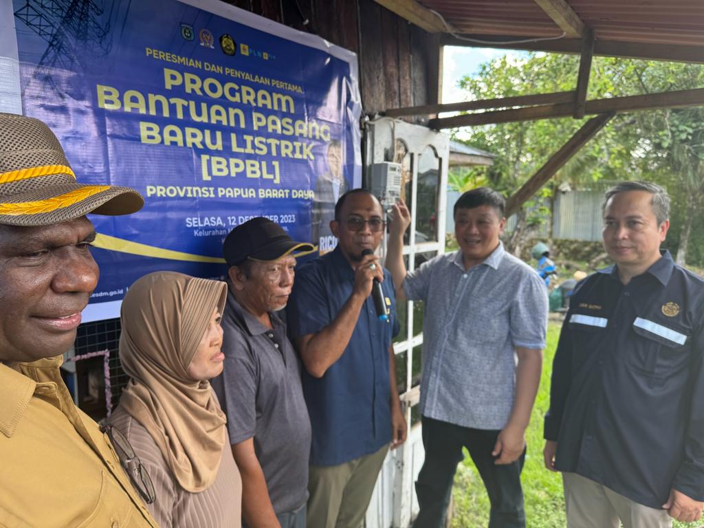 Penyalaan simbolis Program Bantuan Pasang Baru Listrik (BPBL) tersebut dilakukan oleh Anggota Komisi VII DPR RI, Rico Sia, Koordinator Perencanaan Transmisi Tenaga Listrik Direktorat Jenderal Ketenagalistrikan Kementerian ESDM, Muhadi, General Manager PT PLN (Persero) Unit Induk Wilayah Papua dan Papua Barat, Budiono serta Staf Ahli Bupati Sorong Bidang Pembangunan, Markus Karath di Distrik Aimas, Kabupaten Sorong, Selasa (12/12/2023).