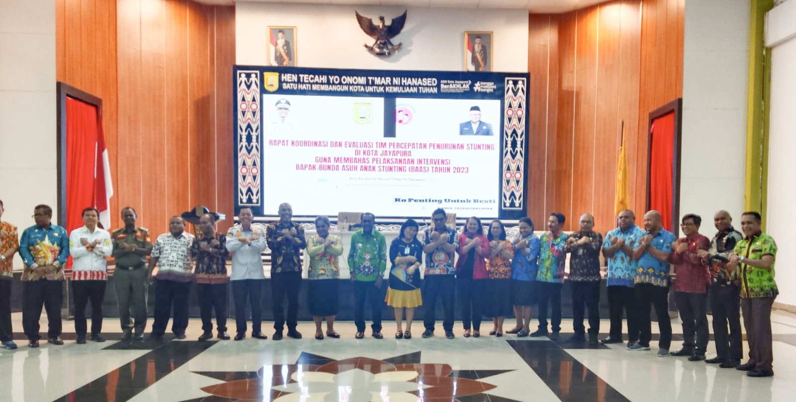 Paraparatv.id | Jayapura | Pemerintah Kota (Pemkot) Jayapura melakukan koordinasi dan evaluasi tim percepatan penurunan stunting, guna membahas pelaksanaan intervensi Bapak Bunda Asuh Anak Stunting (BAAS) 2023.