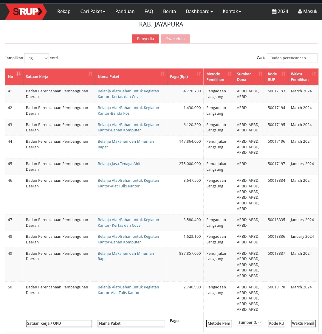 Berikut detail dari Paket dengan kode RUP 50018337 : https://www.paraparatv.id/wp-content/uploads/2024/03/Penyedia-Kab.-Jayapura.pdf.