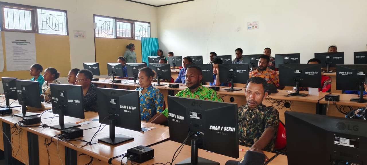 Bertempat di laboratorium komputer SMA Negeri 1 Serui, 149 peserta mengikuti seleksi dalam 3 sesi dengan per sesi 50 peserta dalam 2 ruangan.