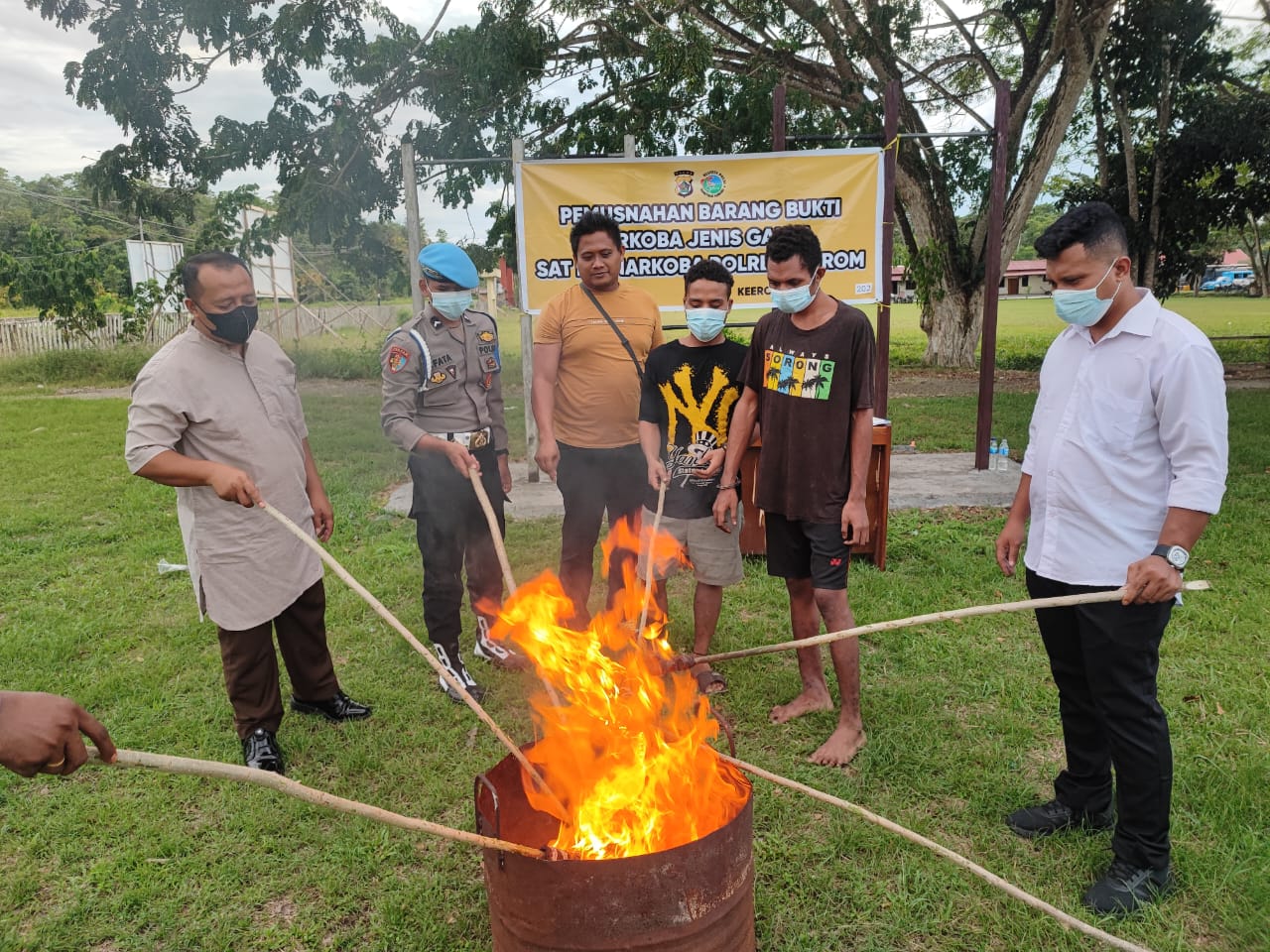 Proses pemusnahan barang bukti tersebut dilakukan di lapangan apel Polres Keerom pada hari Senin (06/05/24) yang dipimpin oleh Kasat Resnarkoba Polres Keerom, Ipda Andrian F.S., serta dihadiri oleh perwakilan Kejaksaan Negeri Jayapura, Bapak Arifin SH.
