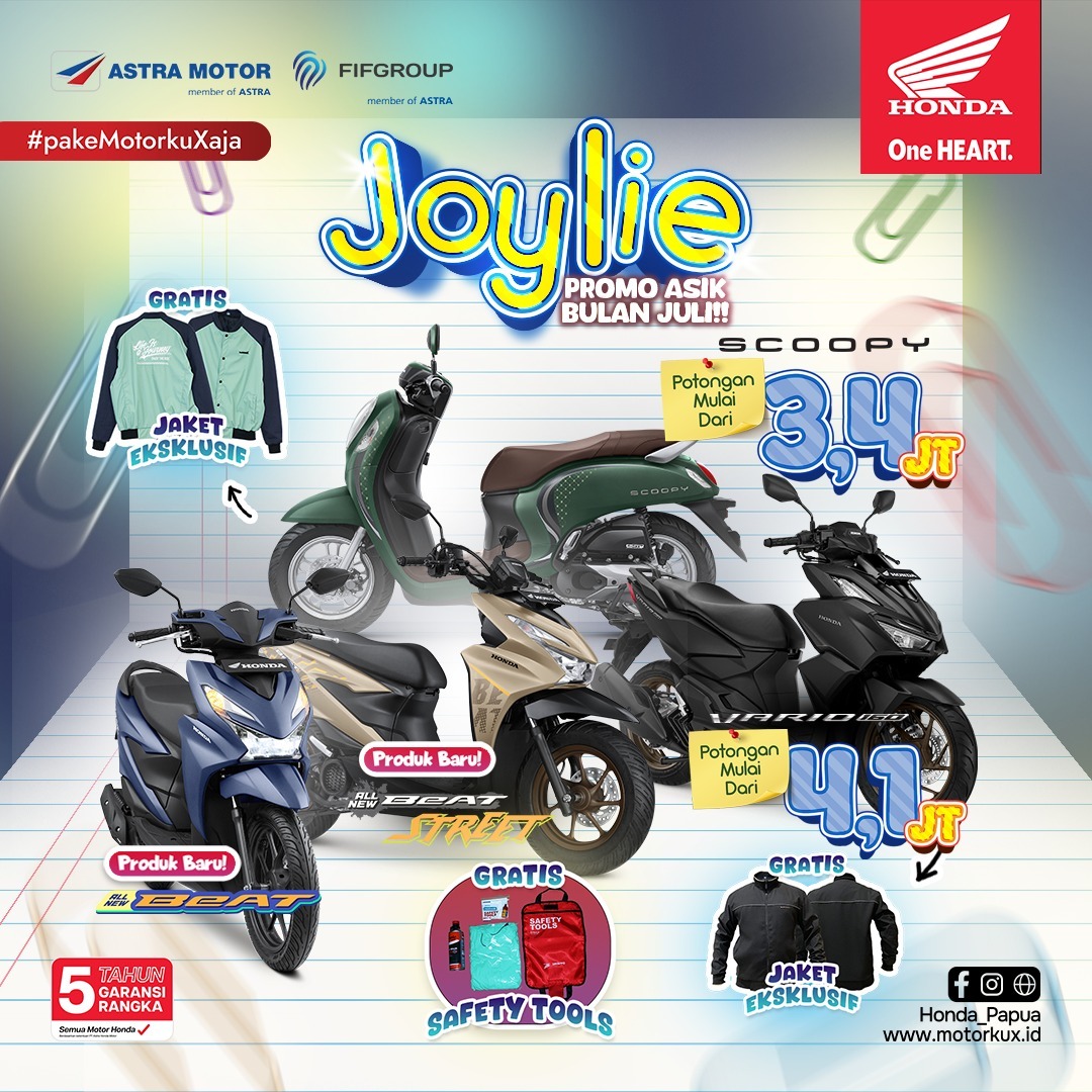 Paraparatv.id | Jayapura | Astra Motor Papua selaku main dealer sepeda motor Honda untuk wilayah Papua dan Papua Barat kembali menghadirkan promo spesial di bulan Juli yang bertajuk “Joylie”.