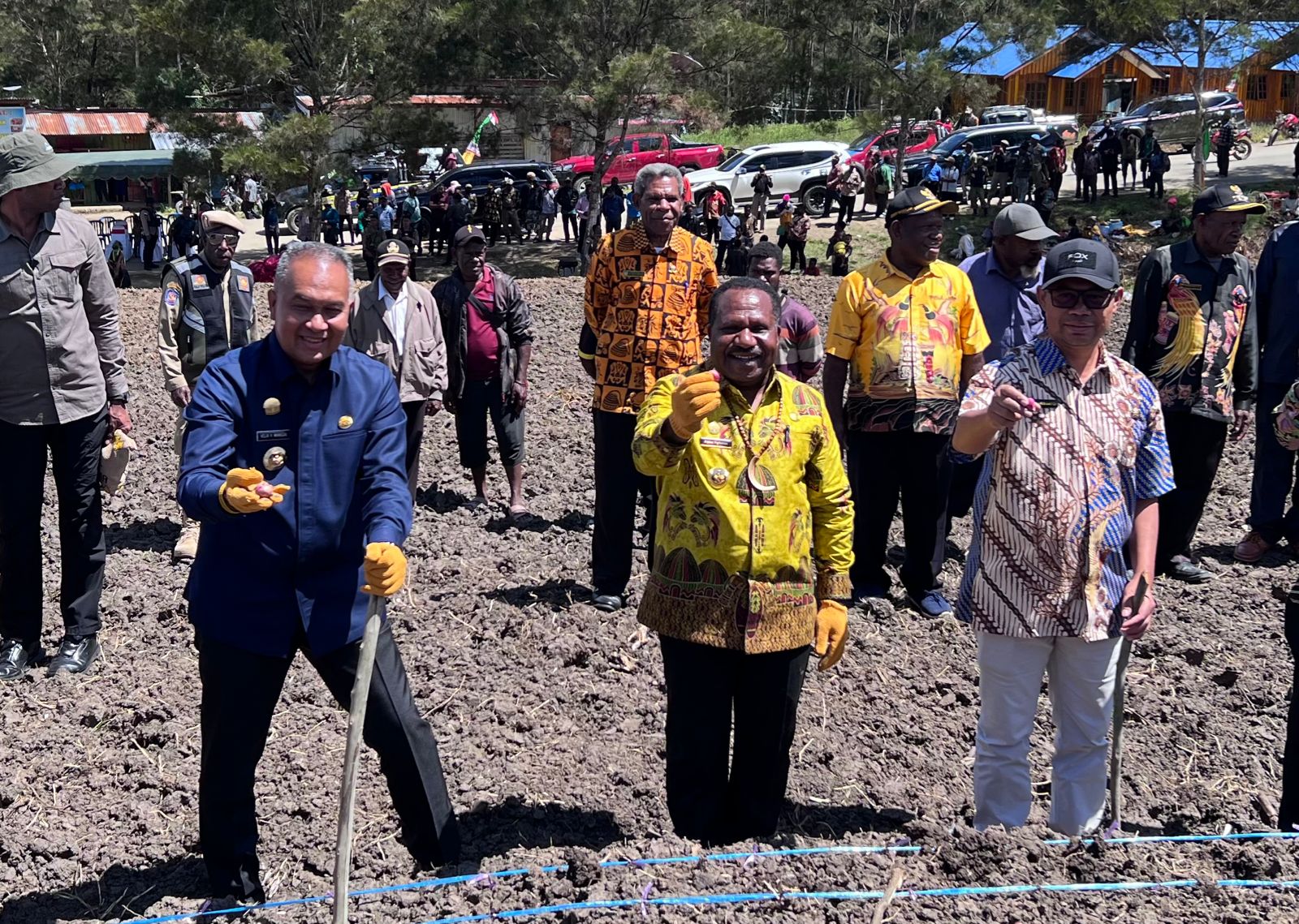 Paraparatv.id | Tiom | Penjabat Gubernur Papua Pegunungan bersama Penjabat Bupati Lanny Jaya melakukan penanaman Bawang Merah Kelompok IR Lanny distrik tiom Lanny jaya, Jumat (2/8).