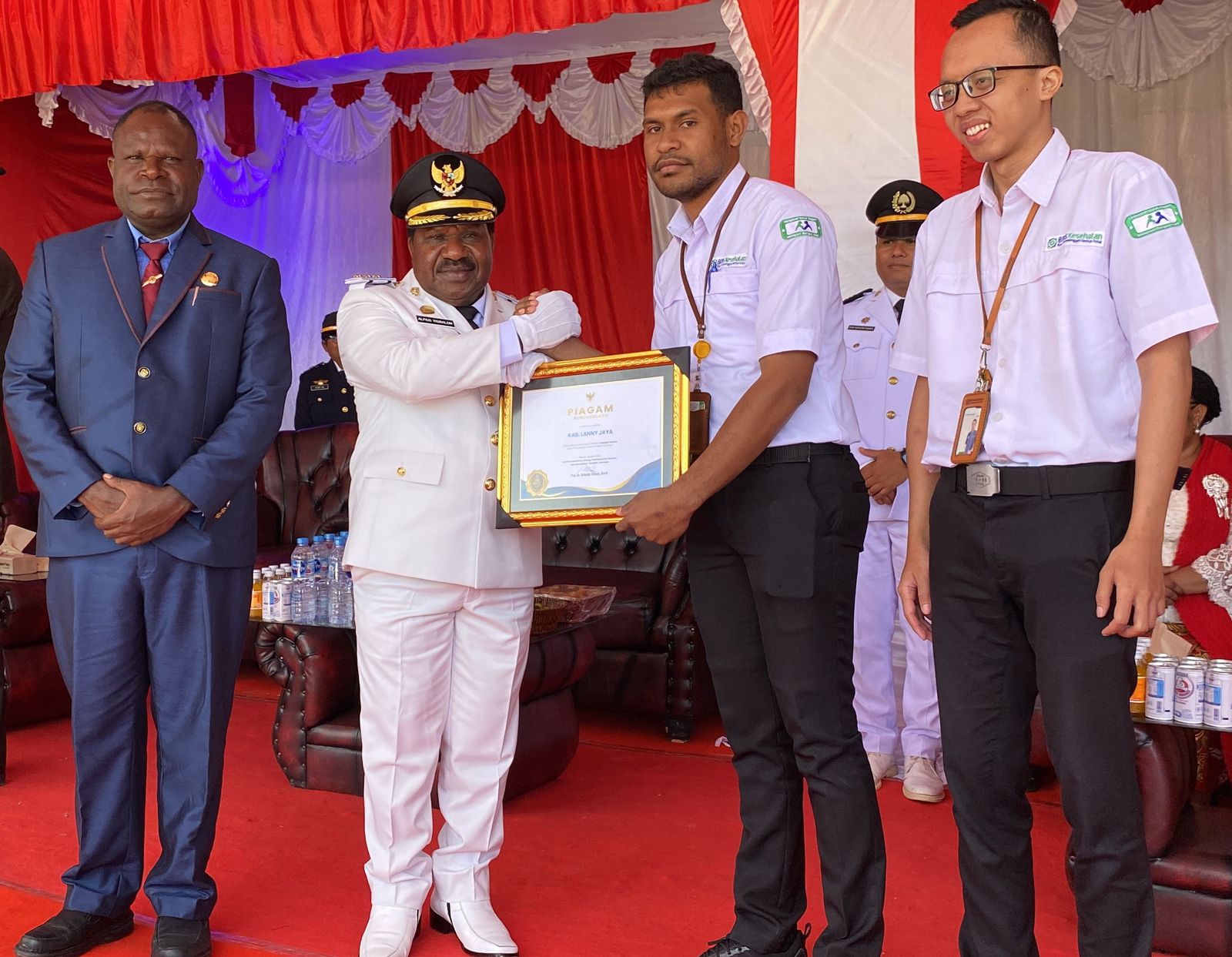 Pada Puncak Perayaan HUT RI ke 79, BPJS kesehatan menyerahkan secara simbolis kepada Penjabat (Pj) Bupati Lanny Jaya, Alpius Yigibalom,di Lapangan Ampera Tiom Lanny jaya,(17/8).