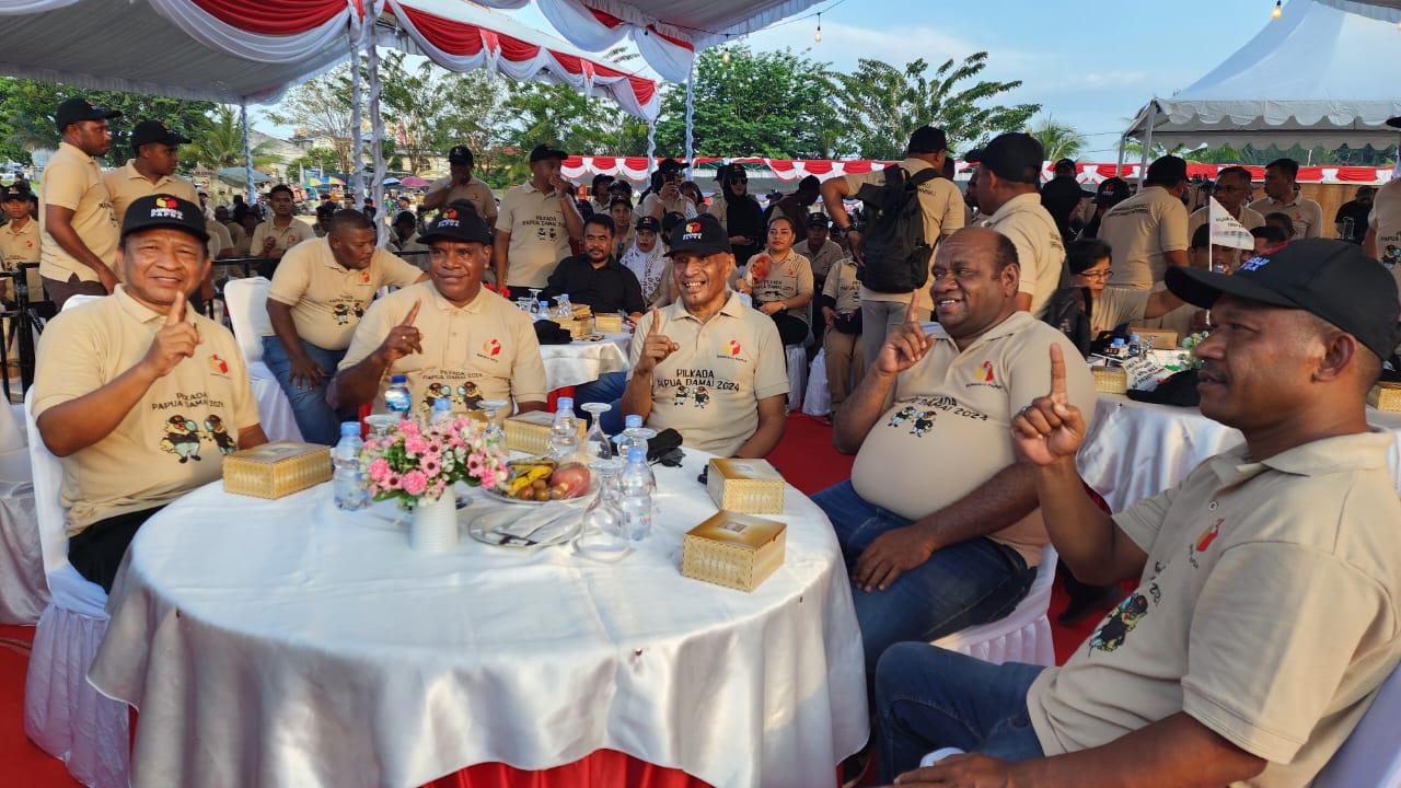 Kegiatan yang dilaksanakan di Lapangan PTC Karang Entrop, Selasa (24/09/2024) ini di hadiri dua Pasangan calon Gubernur dan Wakil Gubernur, PJ. Gubernur Papua,Kapolda Papua,Pangdam Cendrawasih dan Forkompimda lainnya.
