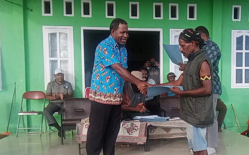 Paraparatv.id | Nduga | Tim Sukses Pasangan Calon Bupati Nduga Nomor Urut 2 Dinard Kelnea, SSos dan Yoas Beon atau disingkat DIYO untuk Nduga 1, tahun 2024 – 2029 telah menyerahkan SK Tim Distrik dan pemantapan relawan.
