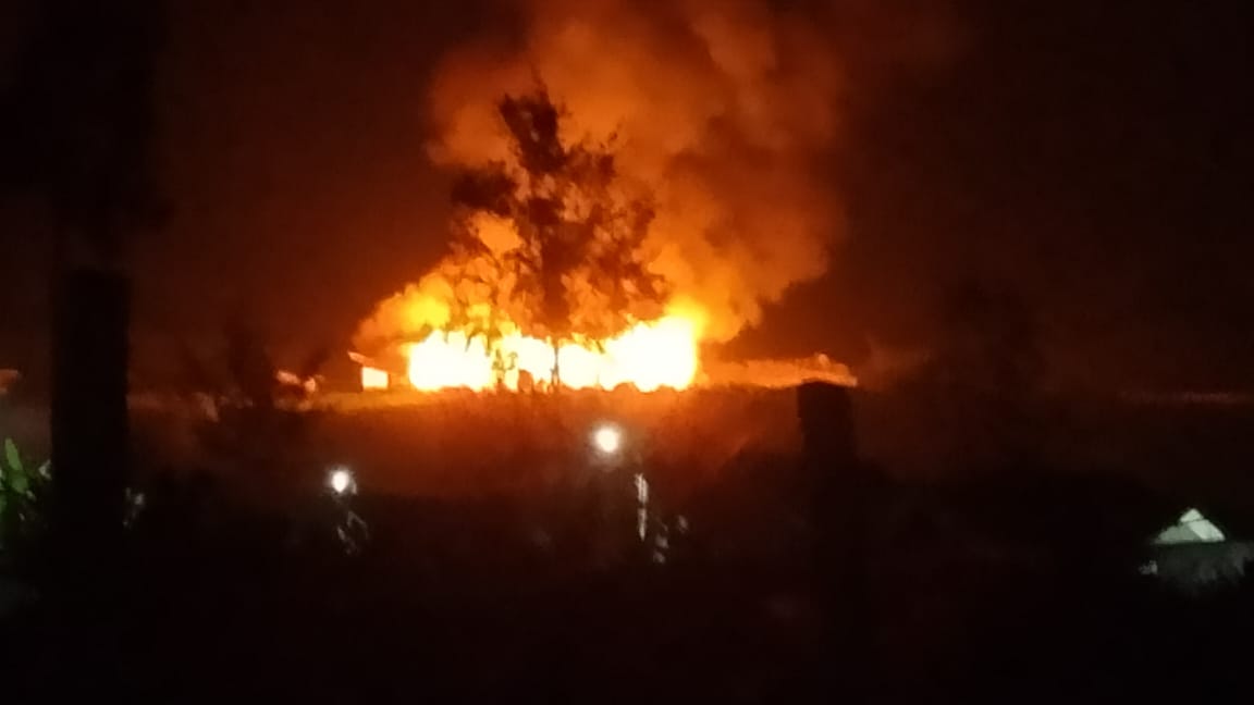 Tampak api berkobar menghanguskan Kedung SMA di Sinak