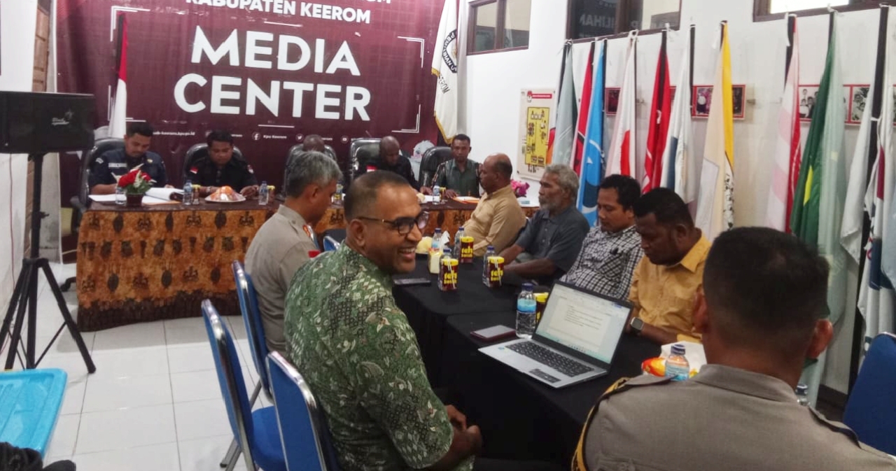 Paraparatv.id | Keerom | Dalam rangka persiapan debat pasangan Calon Bupati dan Wakil Bupati Keerom yang ke satu, Komisi Pemilihan Umum (KPU) Keerom menggelar rapat terbatas bersama para Panelis dari kalangan Akademisi, Tim ahli, Pakar, Moderator, pihak Kepolisian dari Polres Kabupaten Keerom, dan juga perwakilan dari ketiga kandidat Calon Bupati dan wakil Bupati Keerom guna membahas point-point penting jelang debat ke-I.