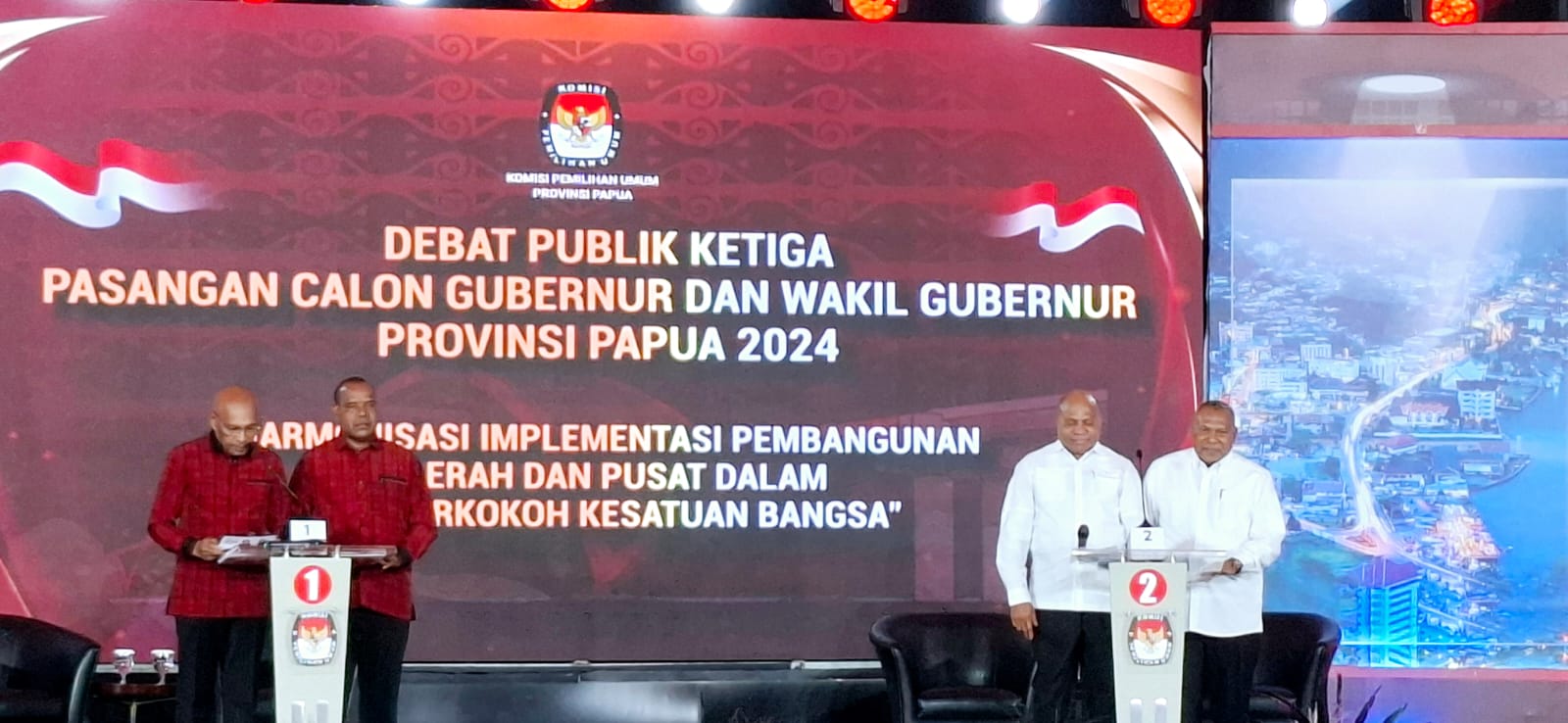 Paraparatv.id | Jakarta | Debat ketiga calon Gubernur dan Wakil Gubernur Papua berlangsung di Jakarta, tepatnya di Hotel JS Luansa Rasuna Said, Jakarta Selatan, Kamis (21/11/2024.