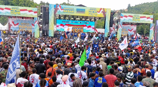 Calon Gubernur Papua Mathius D. Fakhiri mengapresiasi kehadiran warga dalam kampanye akbar yang digelar dihari terakir Kamapnye terbuka.