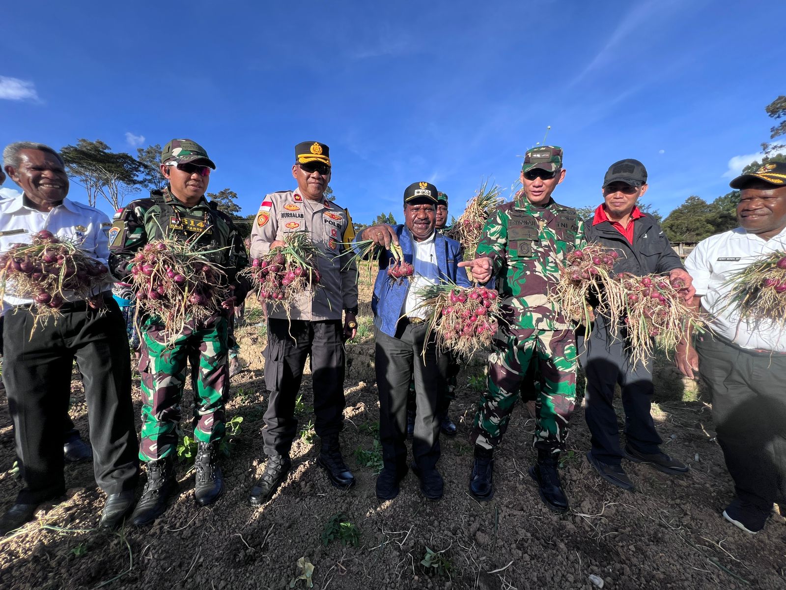 Panen raya bawang merah ini dilakukan secara simbolis dengan mengundang Kapolres Lanny Jaya, Dandim 1715, Danyon 614 Rajapradita serta Kepala OPD.