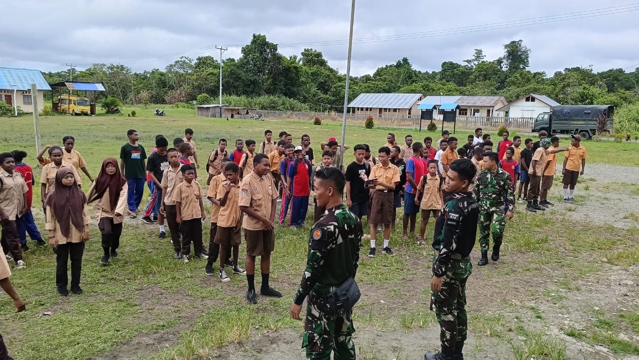 Paraparatv.id | Keerom | Dalam rangka membina karakter dan menanamkan nilai-nilai kebangsaan kepada generasi muda di wilayah perbatasan, Satgas Yonif 512/QY menggelar kegiatan pramuka bersama siswa SMP di Distruk Senggi. Kamis, (12/12/2024).