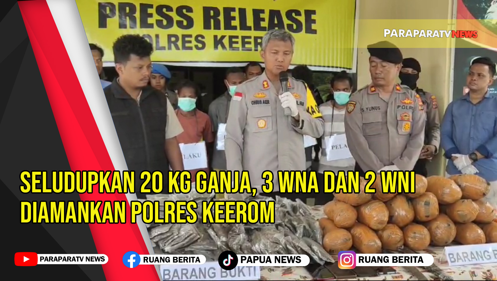 ParaparatvNEWS | VIDEO | Polres Keerom berhasil menangkap lima orang pelaku penyeludup ganja sebanyak 20 kilogram, dari ke lima pelaku tiga orang merupakan warga negara asing asal PNG, rencananya ganja tersebut akan di edarkan di Jayapura.