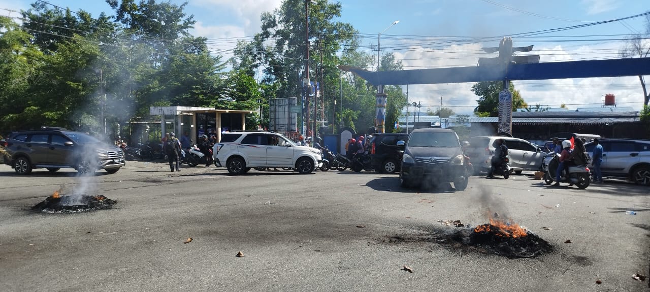 Dalam aksi tersebut, para kontraktor selain menutup akses keluar masuk pintu gerbang Kantor Pemkab, mereka juga membakar dua ban bekas di tengah-tengah ruas jalan keluar masuk Kantor Pemkab.