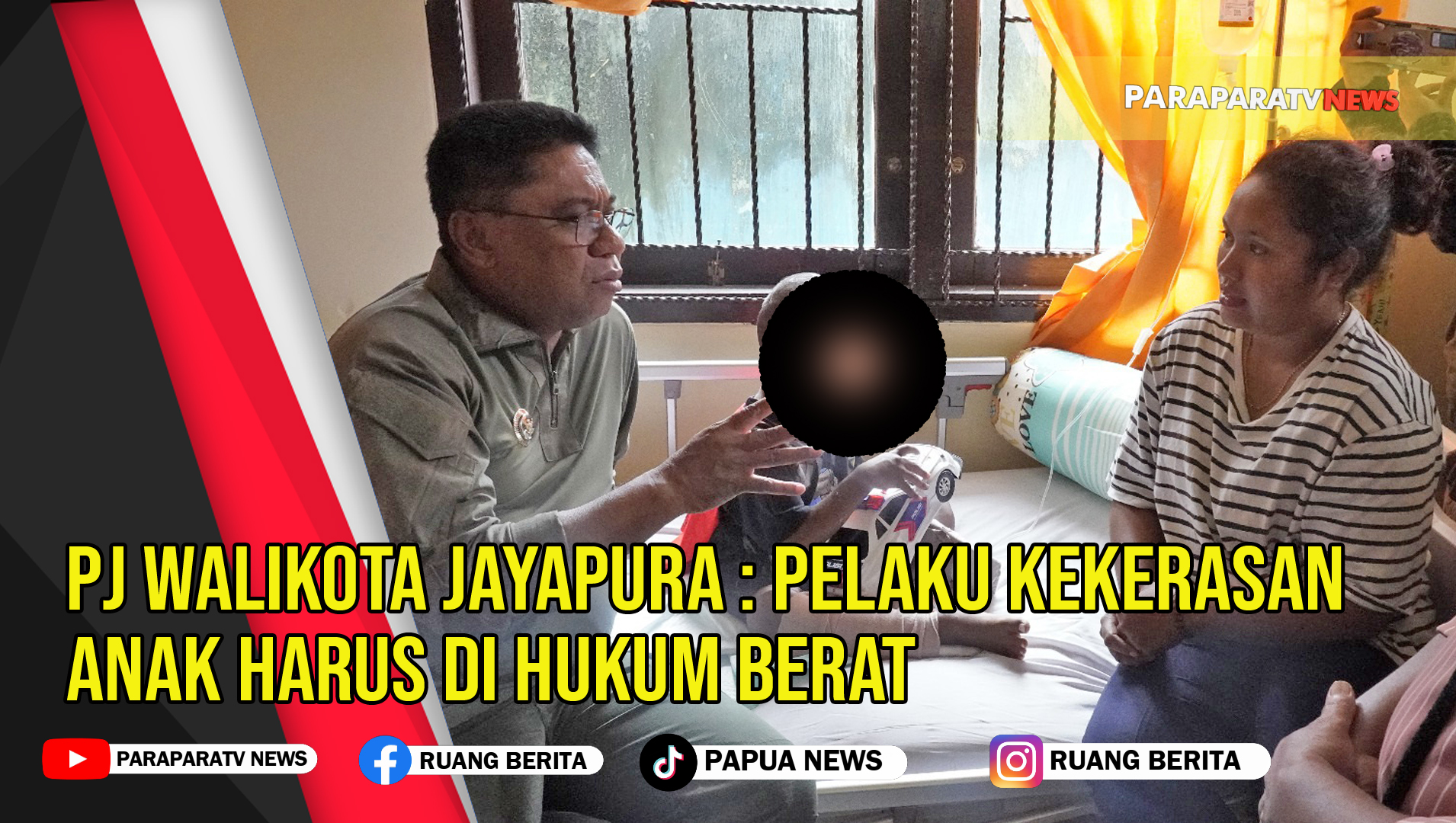 ParaparatvNEWS | VIDEO | Nasib Naas Dialami Alfaris Sanadi Bocah Berusia 5 Tahun Harus Menjalani Perawatan Medis Di Rumah Sakit Bhayangkara Jayapura, Setelah Mengalami Peyiksaan Dari Kedua Orang Tua Angkatnya Di Kawasan Perumahan Organda Padang Bulan, Distrik Heram, Kota Jayapura.