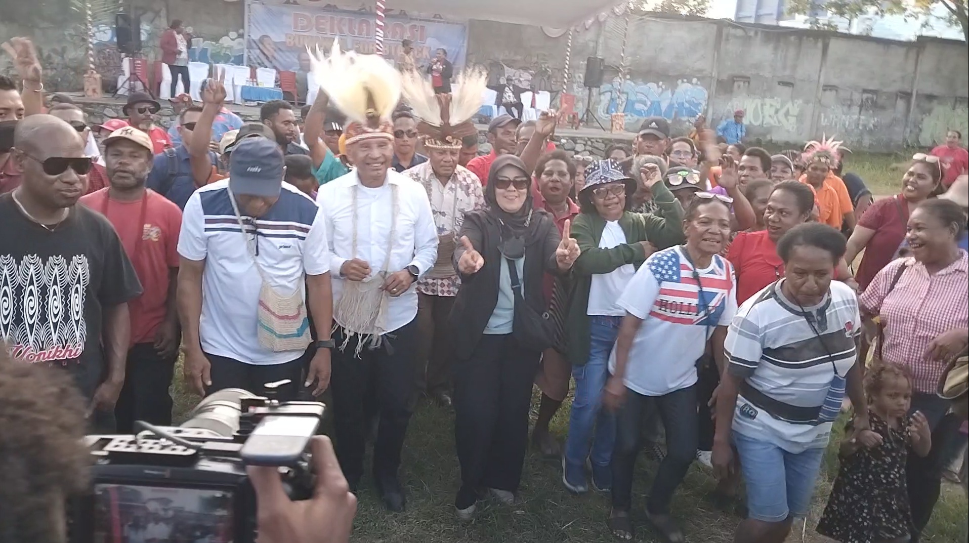 Sejak pagi, Lapangan Theys Eluay dipenuhi oleh ratusan warga adat yang mengenakan atribut budaya khas Sentani. Tarian adat, pukulan tifa, dan nyanyian tradisional mengiringi jalannya acara, menciptakan suasana yang khidmat namun penuh energi. Berbagai spanduk dan baliho bertuliskan dukungan terhadap BTM-CK turut menghiasi lokasi acara.