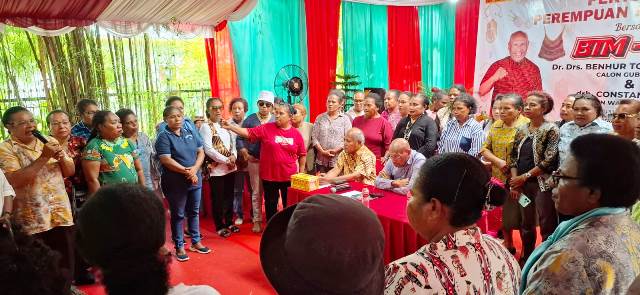 Paraparatv.id | Jayapura | Ratusan relawan perempuan Tabi – Saireri memberikan komitmennya untuk mendukung Pasangan Calon Gubernur Papua, Benhur Tomi Mano (BTM) dan Calon Wakil Gubernur, Constant Karma (CK).