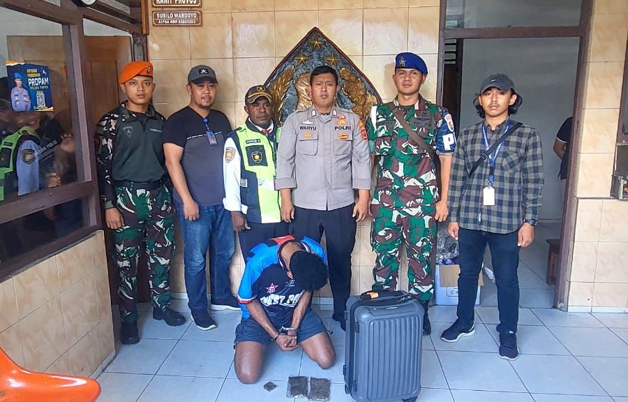 Paraparatv.id | Jayapura | Aparat Polsek Kawasan Bandara Sentani mengamankan seorang penumpang transit dari Timika menuju Sorong, bernama Amos Pericopsis Aiwi Iwanggin (24), calon penumpang Lion Air tujuan Timika, yang kedapatan membawa 3 (Tiga) paket Narkotika Jenis daun ganja kering dalam saku celana dan koper miliknya.