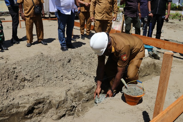 Paraparatv.id | Jayapura | Wali Kota Jayapura, Abisai Rollo bangun 2 unit rumah layak huni untuk warga skouw sae, distrik muara tami, Hal itu ditandai dengan peletakan batu pertama pembangunan rumah warga melalui program turun kampung Wali Kota Jayapura, Selasa 20 Mei 2025.