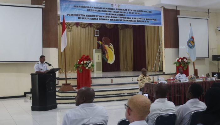 Paraparatv.id | Yapen | Wakil Bupati Kabupaten Kepulauan Yapen Roi Palunga secara resmi membuka kegiatan ujian kenaikan pangkat penyesuaian ijazah Aparatur Sipil Negara (ASN) berbasis Computer Assited Test (CAT) di lingkungan Pemerintah Kabupaten Kepulauan Yapen dan Pemerintah kabupaten Waropen. Bertempat di Gedung Silas Papare Serui. Rabu (30/1/25).
