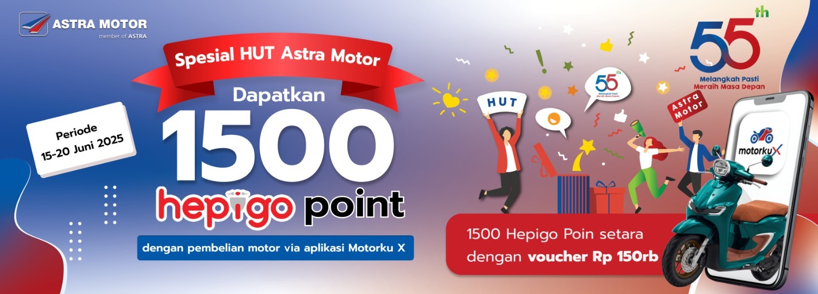 Paraparatv.id | Jayapura | Dalam rangka merayakan HUT Astra Motor ke-55, Astra Motor Papua memberikan apresiasi spesial kepada konsumen setia Honda. Pada periode 15–20 Juni 2025, konsumen yang melakukan pembelian sepeda motor Honda melalui aplikasi MotorkuX berkesempatan mendapatkan 1500 HEPIGO Point, sebagai bagian dari program loyalitas yang bertujuan untuk meningkatkan kepuasan dan keterikatan pelanggan.