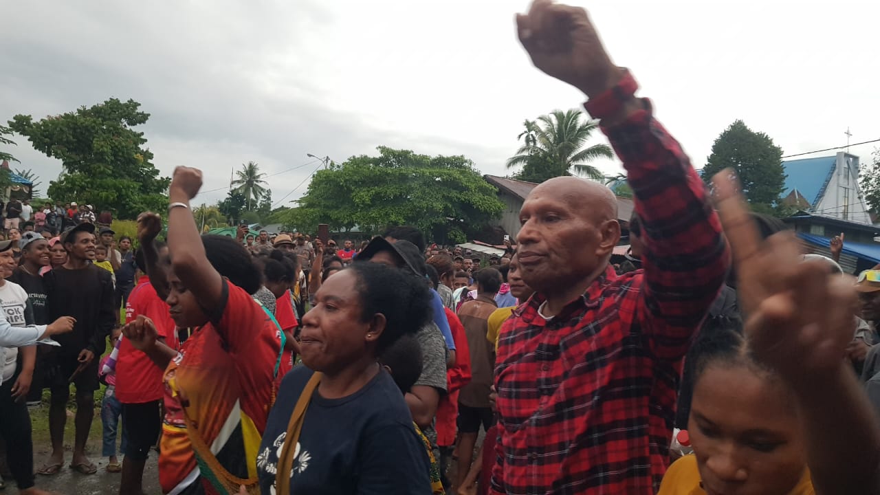 Usai kampanye, masyarakat Mamberamo Raya turun langsung bernyanyi dan menari bersama BTM dan sang istri Kristina Luluporo Mano. (Er)