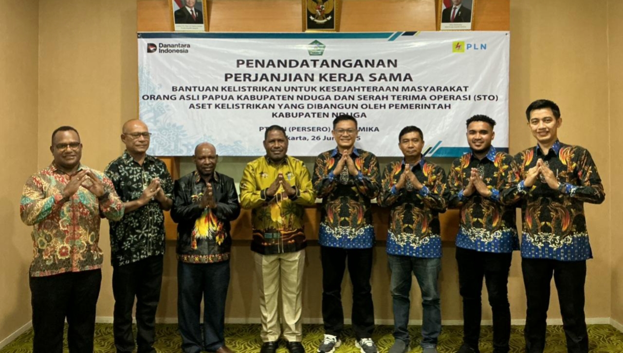 Penandatanganan MoU ini mencakup dua hal penting: bantuan kelistrikan untuk kesejahteraan masyarakat Orang Asli Papua di Kabupaten Nduga, serta serah terima operasi (STO) aset kelistrikan yang sebelumnya dibangun oleh Pemda Nduga kepada PLN. Dalam acara tersebut, Wakil Bupati Yoas Beon mewakili Bupati Nduga, didampingi oleh Asisten I Djoni Karel Rumpaidus dan Plt. Kepala Dinas Perumahan Simion Tabuni. Dari pihak PLN, hadir langsung Kepala UP3 PLN Unit Timika, Parmonangan Andreas Sitorus.