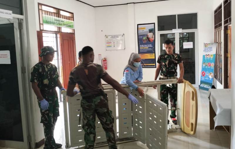 Dalam kegiatan ini, personel Satgas turut serta dalam membantu memindahkan peralatan medis dan menata ulang ruangan agar lebih representatif dan nyaman untuk masyarakat.