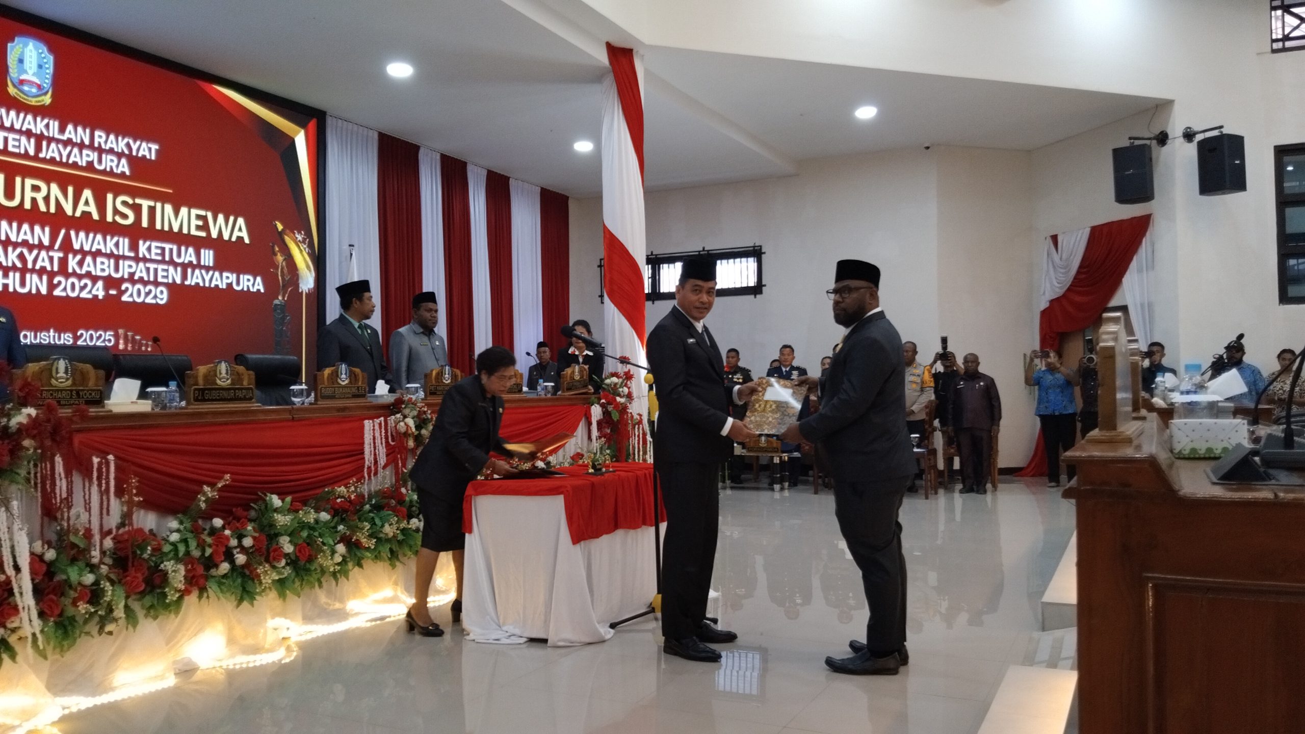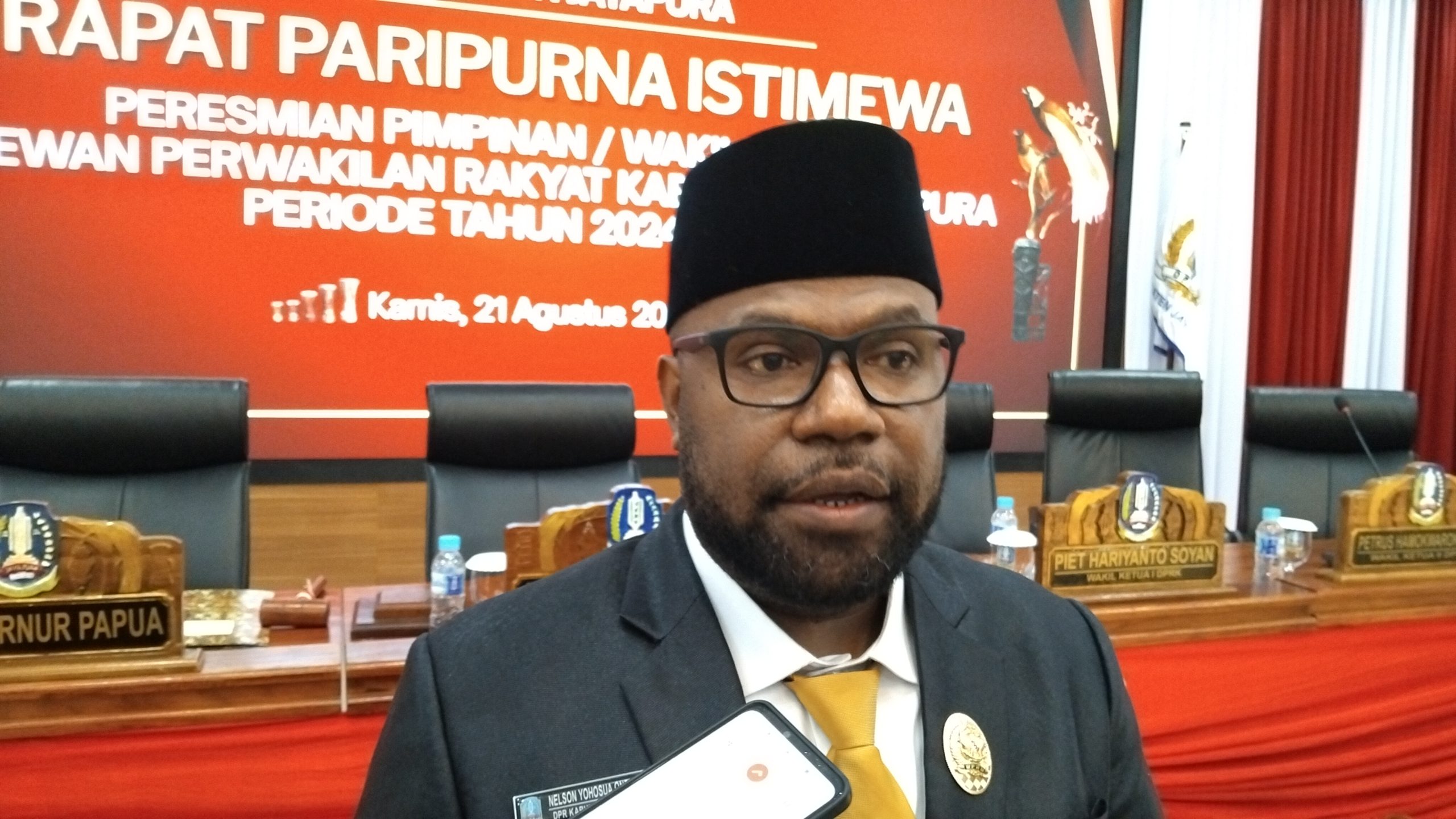 Paraparatv.id |Sentani| – Nelson Yohosua Ondi resmi dilantik sebagai Wakil Ketua III Dewan Perwakilan Rakyat Kabupaten (DPRK) Jayapura pada Kamis (21/8/2025). Usai dilantik, Ondi menegaskan keamanan sebagai prioritas utama untuk mendukung percepatan pembangunan di Kabupaten Jayapura.