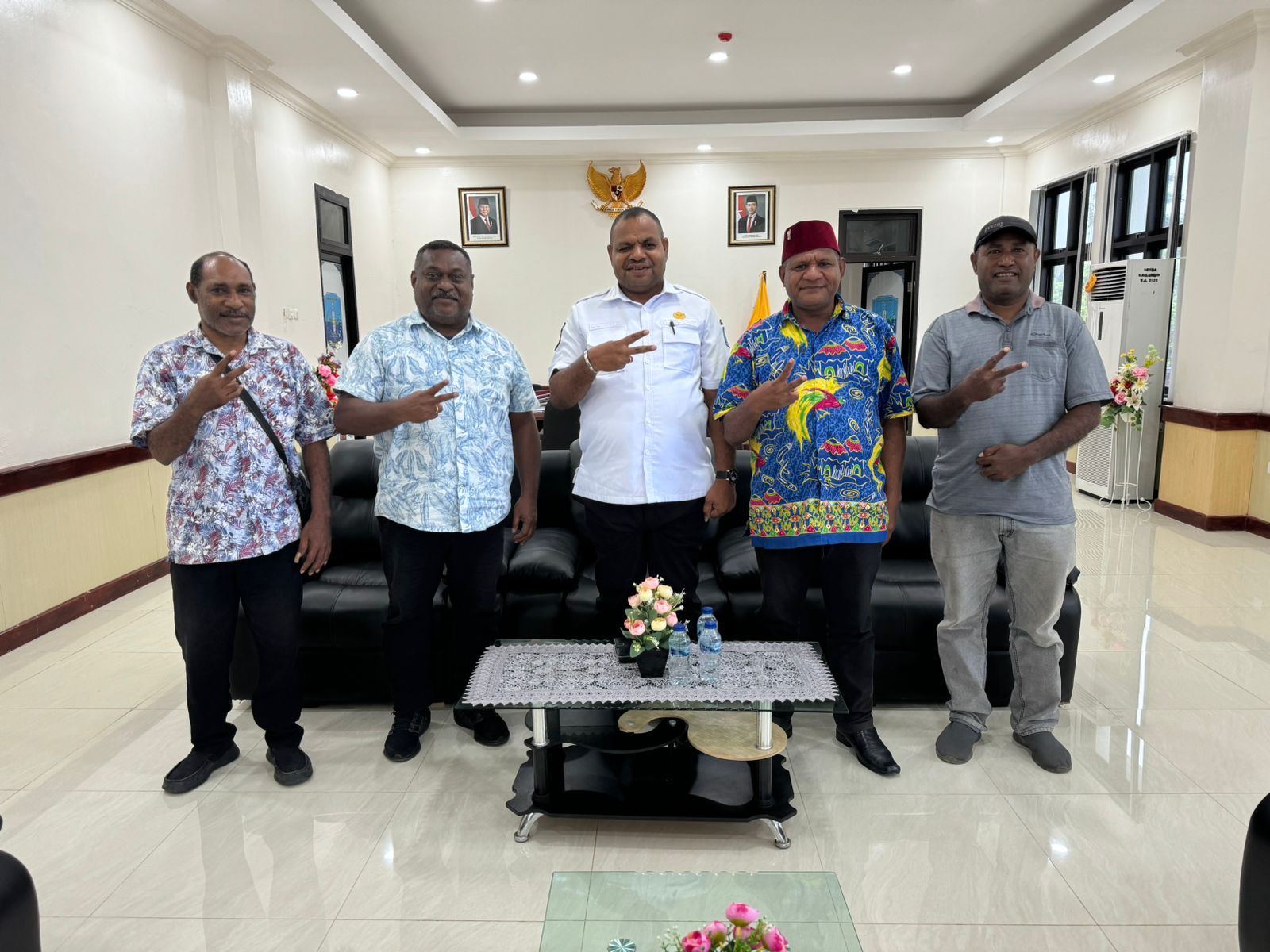 Viral Bupati Supiori Pose 2 Jari Bareng Timses Mari-Yo di Ruang Kerja: Netralitas Disorot