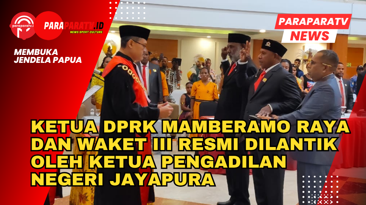ParaparatvNEWS | VIDEO | Setelah menanti dalam waktu yang cukup lama, akhirnya Ketua Dewan Perwakilan Rakyat Kabupaten (DPRK) Mamberamo Raya, Patinus Wanimbo, bersama Wakil Ketua III Simon Abaiso, akhirnya resmi dilantik dalam sebuah upacara yang berlangsung khidmat oleh ketua Pengadilan Negeri Jayapura disalah satu hotel dikota Jayapura.
