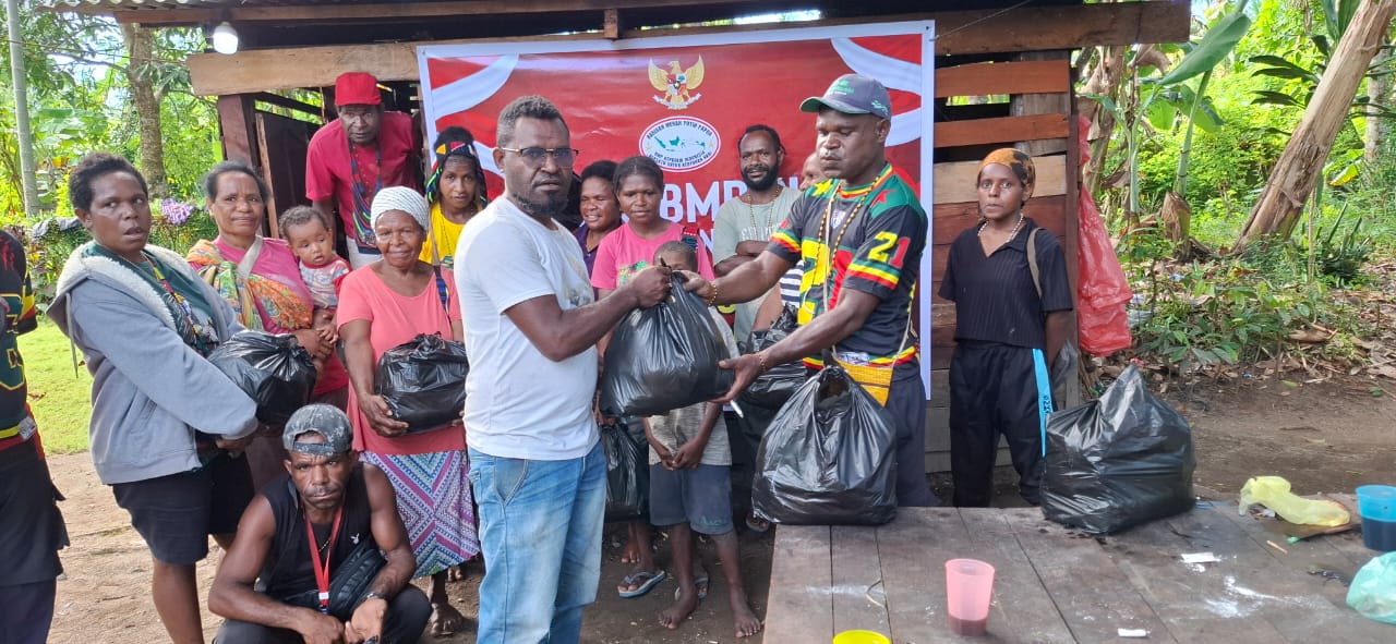 Selanjutnya, pada pukul 10.30 WIT, 50 paket sembako diserahkan kepada masyarakat dari Sanoba dan Kali Harapan yang berkumpul di KPR Kapling Siriwini. Total 150 paket sembako ini diberikan sebagai bentuk kepedulian sosial sekaligus jembatan untuk mempererat hubungan antara pengurus BMP RI dengan masyarakat Intan Jaya.