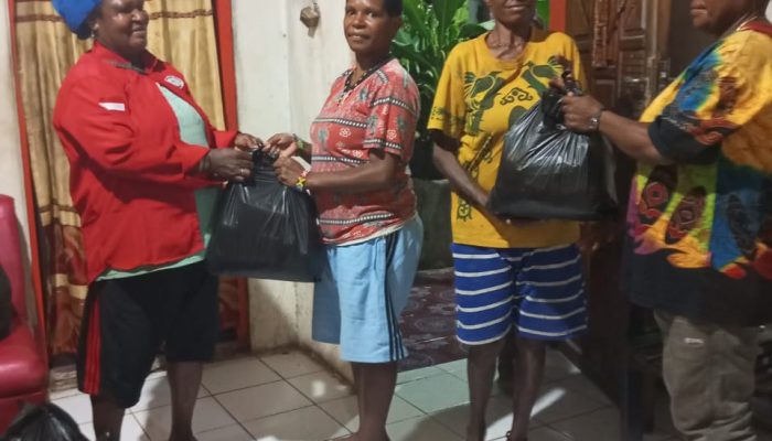 Penyaluran sembako dilakukan dalam dua tahap. Pukul 09.30 WIT, DPC BMP RI membagikan 100 paket sembako kepada warga dari Wadio, Djayanti, dan Kalibobo di Jalan Manobi.
