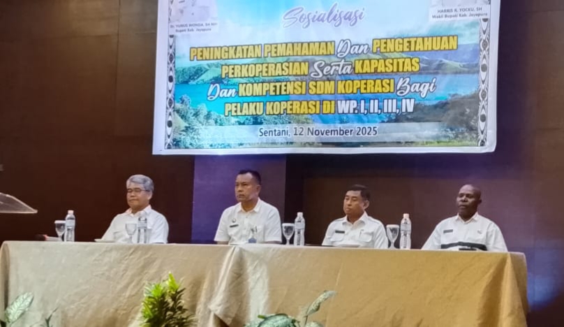 Paraparatv.id | Sentani | Dinas Koperasi dan UMKM Kabupaten Jayapura, Papua memberikan sosialisasi peningkatan kapasitas kepada 50 pengurus koperasi di wilayah I, II, III, IV. Sosialisasi digelar di Sentani, Distrik Sentani, ibu kota Kabupaten Jayapura, Rabu (12/11/2025).