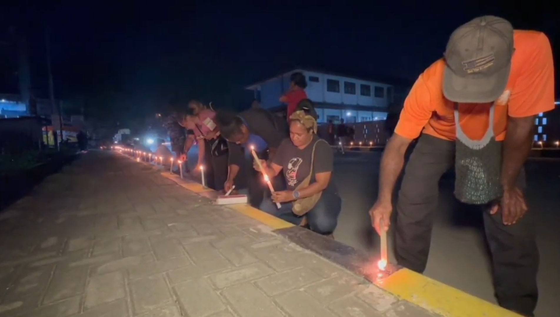 Paraparatv.id |Sentani| — Puluhan perempuan Papua turun ke jalan sekitar Bandara Sentani, Kabupaten Jayapura, pada Kamis malam dalam aksi 1.000 lilin sebagai bentuk solidaritas dan seruan perubahan layanan kesehatan di Papua. Aksi ini menyusul meninggalnya Irene Sokoy, seorang ibu hamil Papua, bersama bayinya dalam kandungan setelah ditolak oleh empat rumah sakit di Kota Jayapura pada Minggu, 17 November 2025.