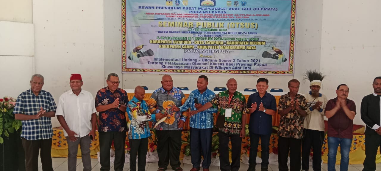 Paraparatv.id | Jayapura | Dewan Presidium Pusat Masyarakat Adat Tabi ( DEPMATA), Provinsi Papua, Gelar Seminar Publik 24 Tahun Iplementasi Lahirnya Otonomi Khusus Otsus, bagi kesejahteraan Masyarakat Adat Papua.